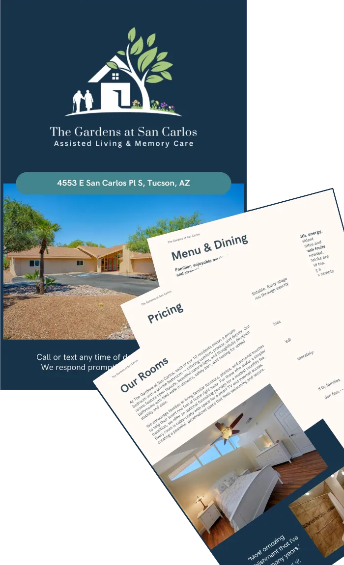 Request our digital brochure for additional details including pricing, room photos, and more information on the care we provide. You can also call or text us anytime at (520) 214-1195.